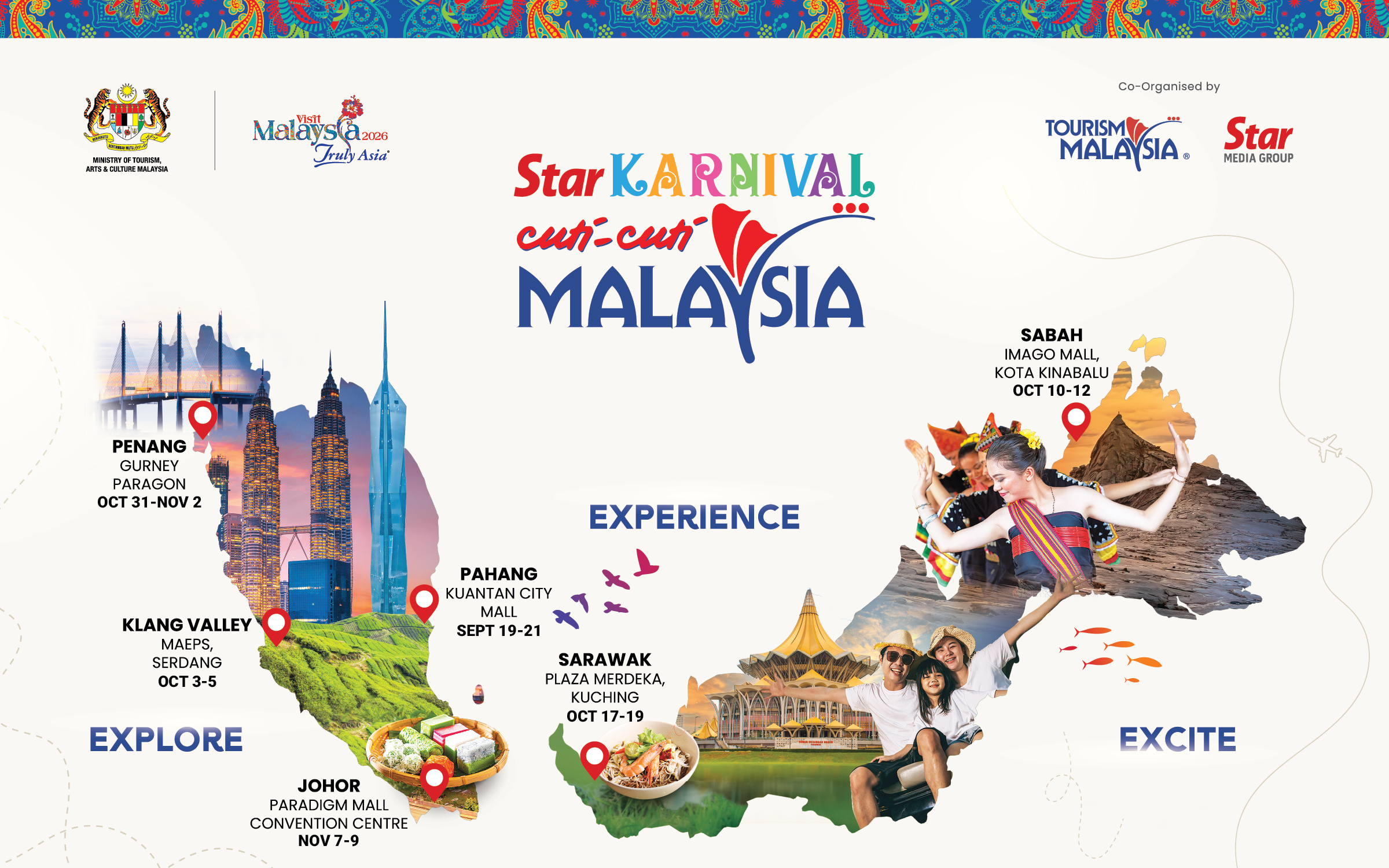 The Star Karnival Cuti-Cuti Malaysia 2025, beginning from Sept 19 in Kuantan, is a strategic collaboration between Star Media Group Bhd (SMG) and Tourism Malaysia to celebrate Malaysian culture and galvanise the nation as we head towards Visit Malaysia 2026.