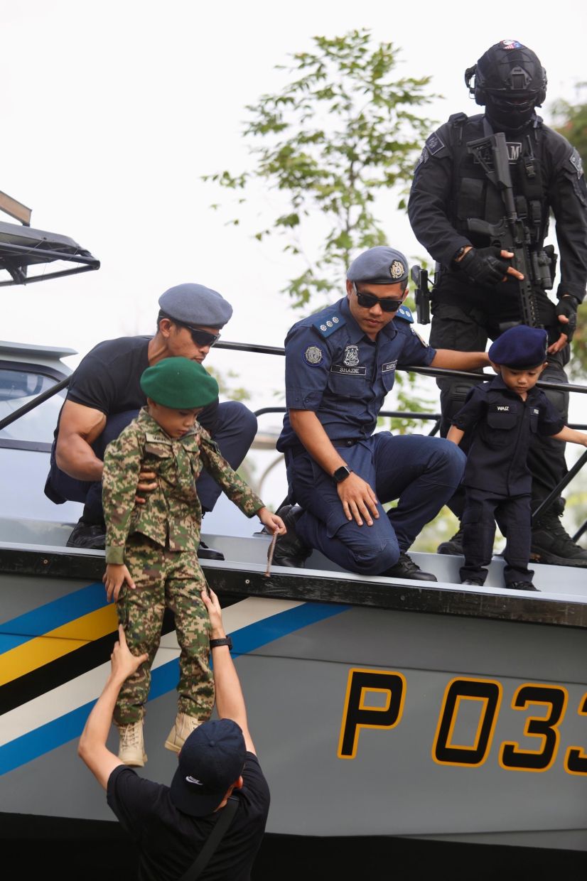 Auxiliary police officer Mohd Hishammudin Jamasin, 31, also brought his children, who donned police and army uniforms.
