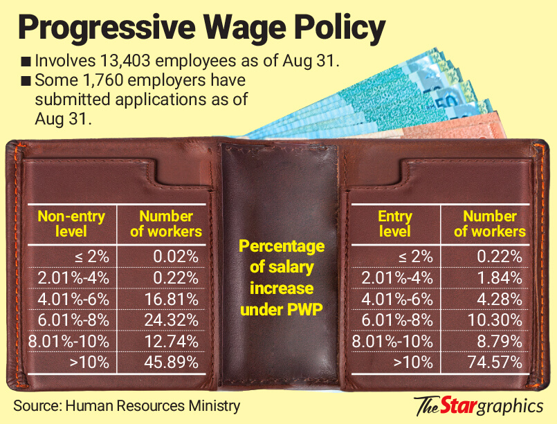 For instance, entry-level workers who earned RM2,000, saw their median wage rise by 22% to RM2,440 under the PWP. The median wage for a non-entry level worker earning RM2,000 rose by 10% to RM2,200, the ministry told The Star.