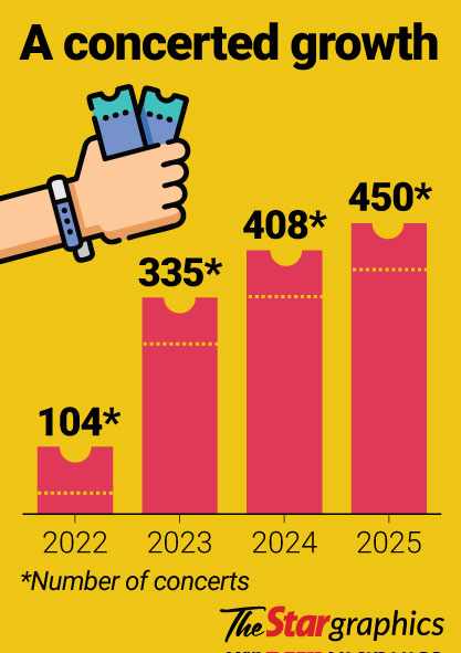 According to the Communications Ministry, Malaysia is on track to host about 450 concerts this year, a steep rise from 104 in 2022, 335 (2023) and 408 (last year).