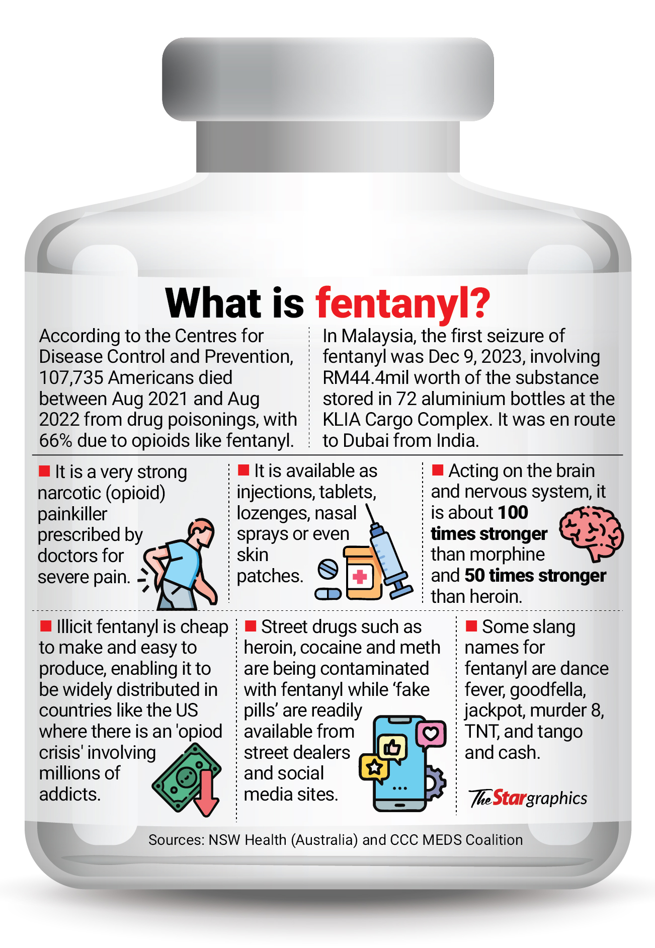 SHAH ALAM: Nearly a tonne of fentanyl – a drug described as 100 times more potent than morphine or heroin – was brought into Malaysia by an international syndicate.