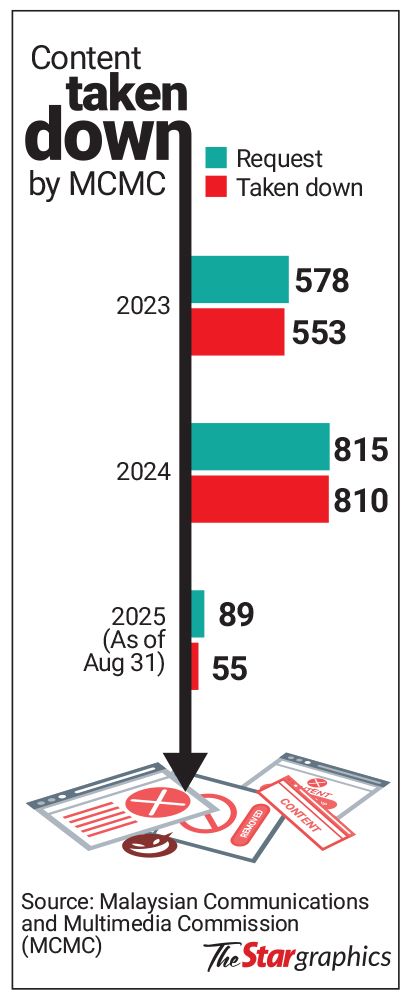 According to the MCMC, it will issue takedown requests to licensed platform providers when unlawful or harmful content is detected or reported.