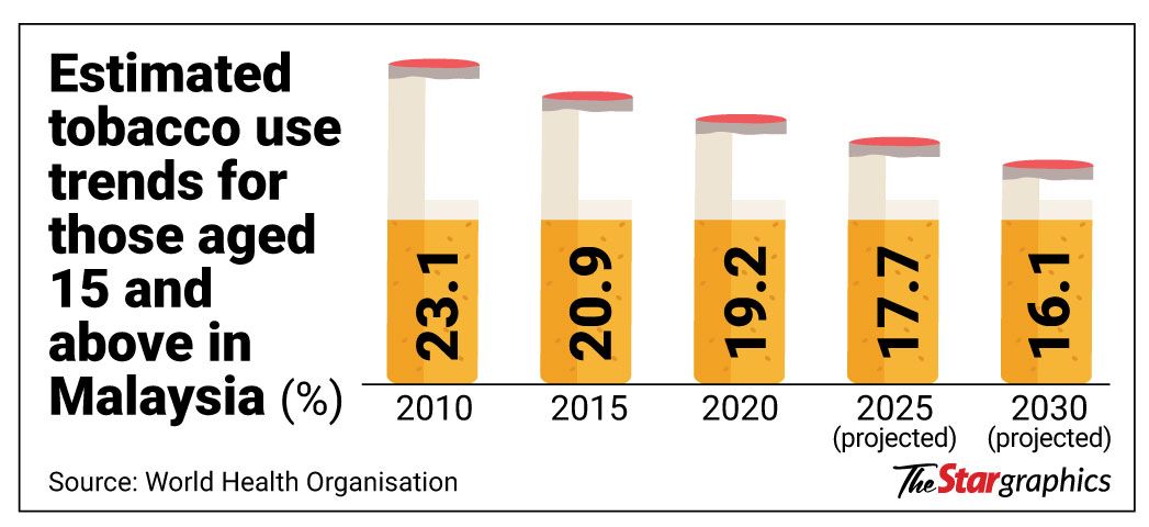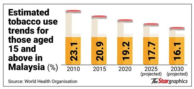 WHO also reported that smoking in Malaysia is forecast to fall from an estimated 23.1% in 2010 to 16.1% in 2030.