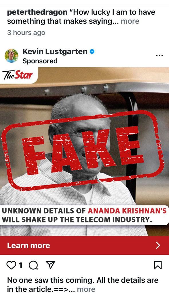 Should you come across fake news articles, social media advertisements or suspicious social media pages impersonating The Star or any other brands, please file a report with Facebook.