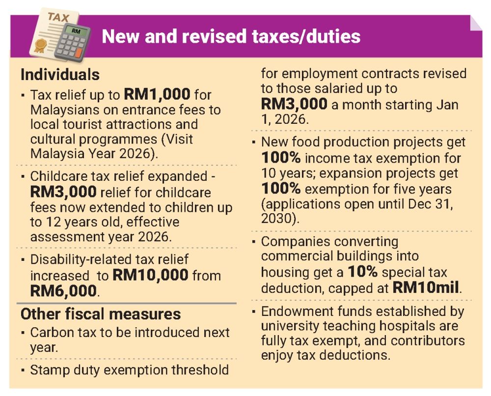 Under Budget 2026, the government has expanded the childcare fee relief from RM3,000 for children aged six and below to those aged up to 12, effective from the 2026 year of assessment.