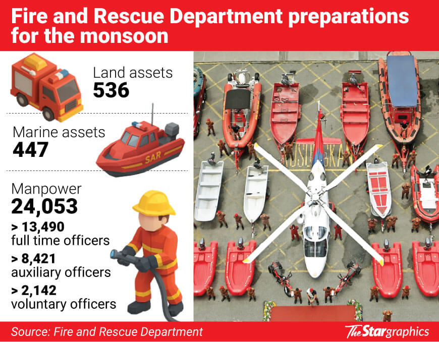 PETALING JAYA: Firefighters are on high alert ahead of the northeast monsoon, with more than 4,000 potential disaster hotspots identified and thousands of personnel ready to be deployed at short notice.