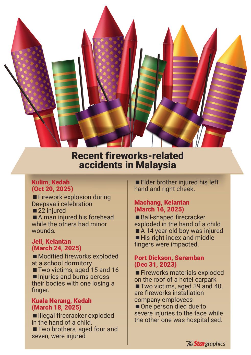 PETALING JAYA: Many Malaysians are now calling for stricter curbs following a spate of injuries linked to fireworks and firecrackers, with some saying this worrying trend began when the laws were eased two years ago.