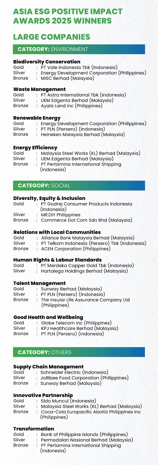 “By celebrating authentic, measurable impact, we want to inspire companies to embed ESG in their DNA, not as compliance, but as culture. Over time, this recognition should shape a generation of enterprises that drive inclusive growth, protect natural capital, and define the region’s future economy through responsibility and resilience,” he said at the event.