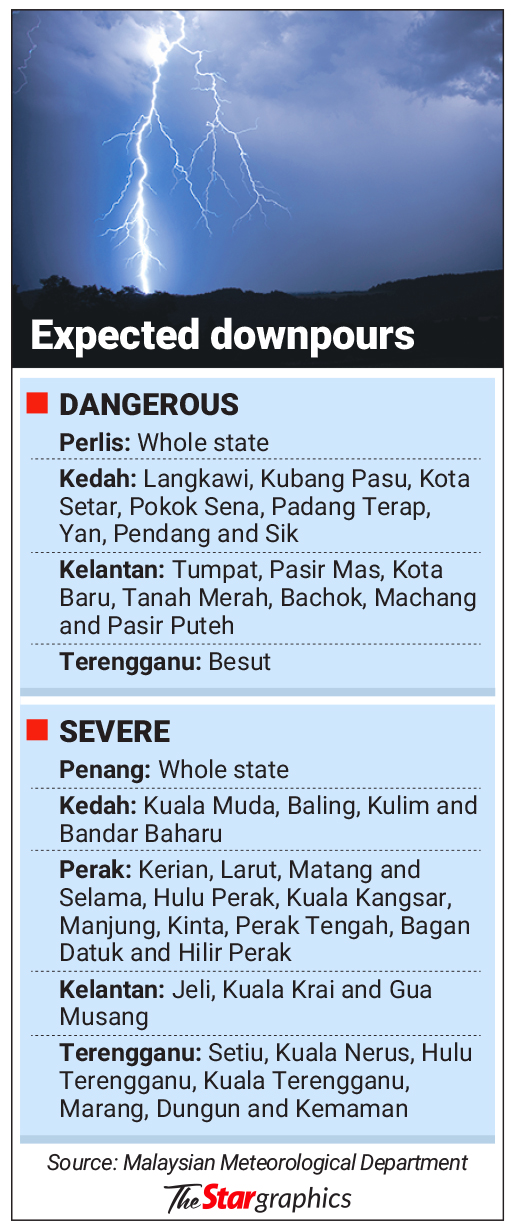Continuous heavy rain – both dangerous and severe – is expected in Perlis, Kedah, Kelantan, Pahang, Penang, Perak and Terengganu until tomorrow, the Malaysian Meteorological Department (MetMalaysia) has warned.