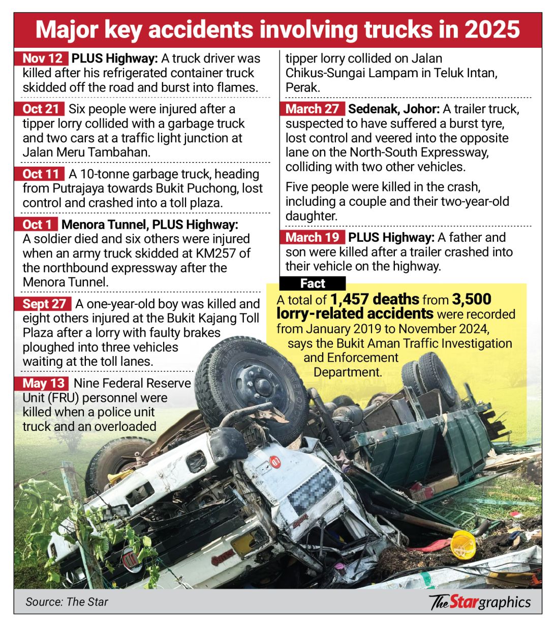 Meanwhile, Assoc Prof Dr Law Teik Hua, head of the Road Safety Research Centre at Universiti Putra Malaysia’s Engineering Faculty, said coordination and collaboration among drivers, transport companies, and the government are needed to lessen fatal accidents.