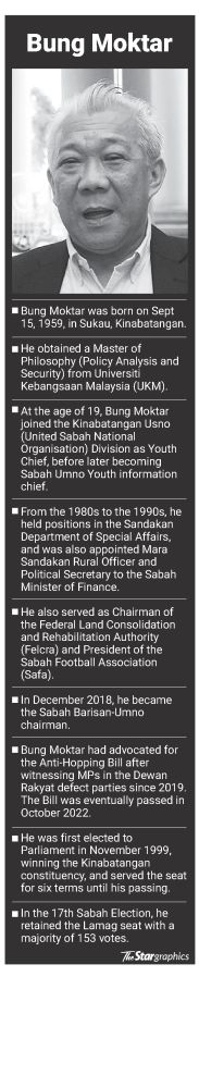A six-term Kinabatangan MP and Lamag assemblyman, Bung Moktar cultivated a following for his bold statements and memorable gaffes, including a four-letter outburst in Parliament.