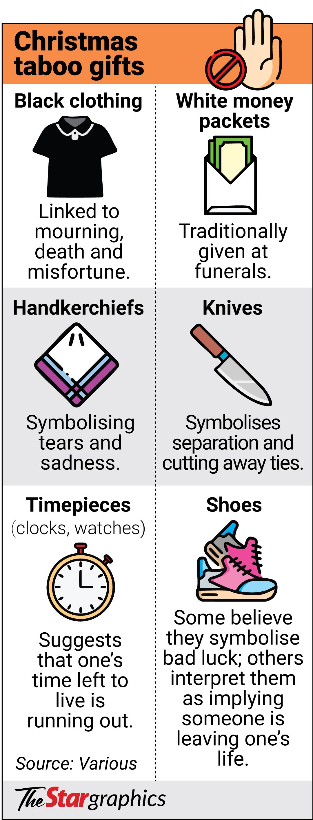 PETALING JAYA: As Malaysians rush to buy Christmas presents for family and friends, many remain mindful of local cultural taboos over gift-giving during the festive season.
