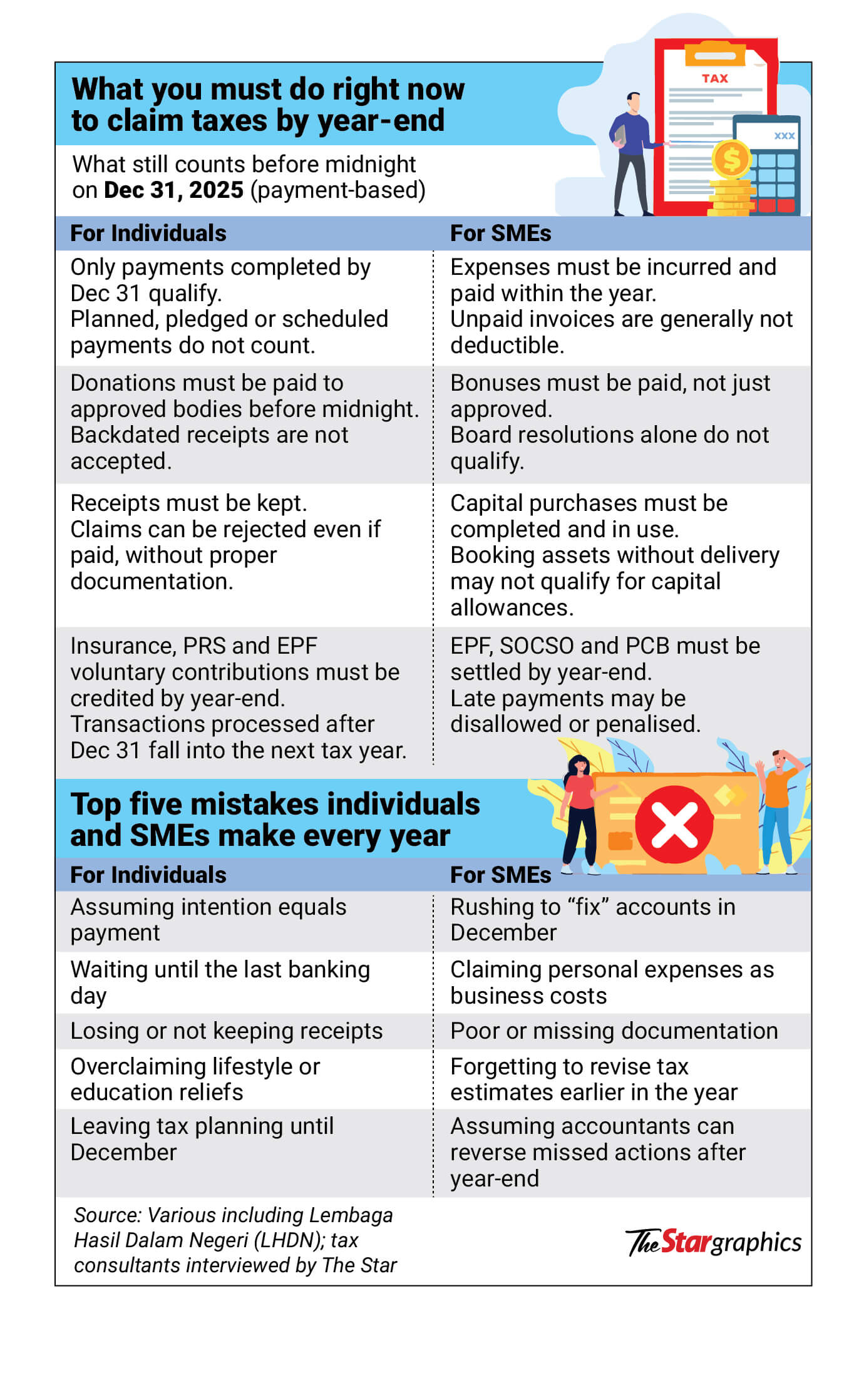 Tax consultant Datin Christine Koh said many taxpayers mistakenly assume that commitments made before year-end, such as signing up for services or intending to make purchases, are sufficient for relief claims, when in fact only expenses incurred by midnight on Dec 31 are recognised.