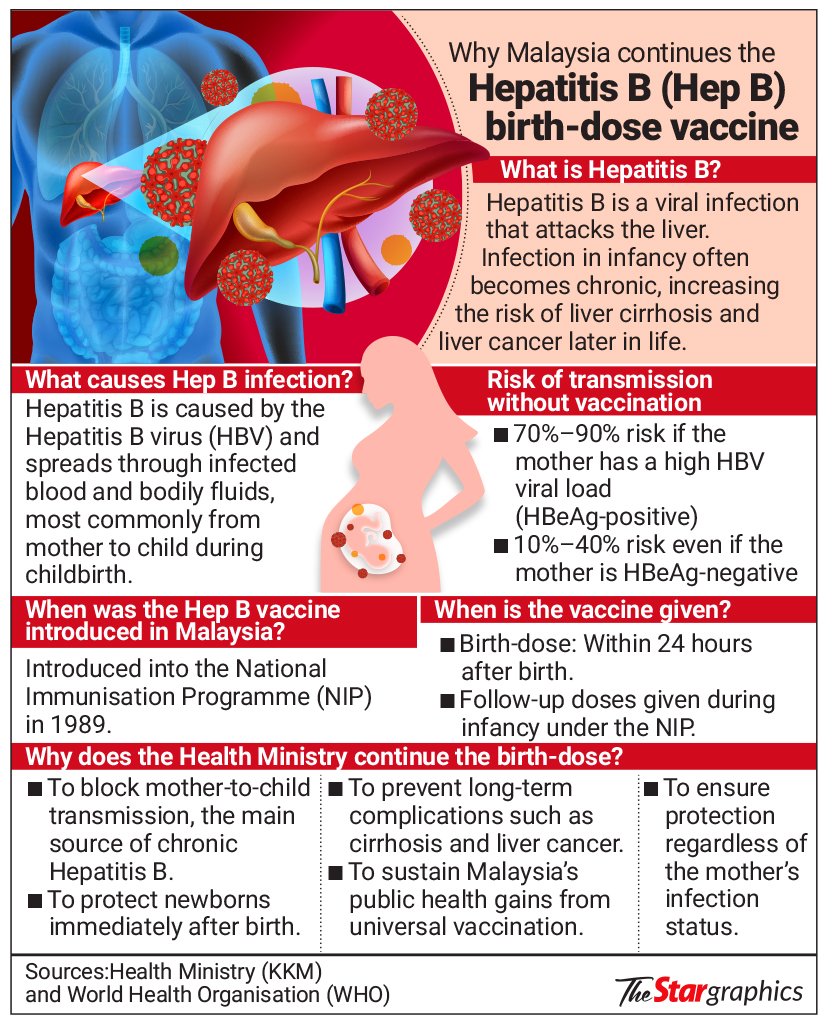 PETALING JAYA: While the United States has dropped its long-standing policy of a universal Hepatitis B birth-dose for newborns, Malaysian health experts say the vaccine for infants is crucial in preventing liver cancer and cirrhosis later in life.