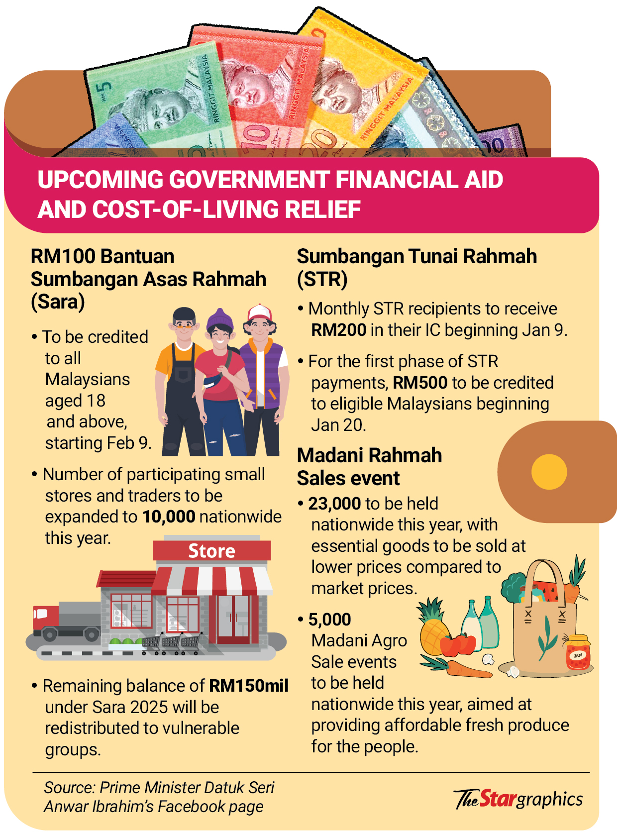 Meanwhile, Anwar said the first phase of the Sumbangan Tunai Rahmah (STR) cash contribution, amounting to up to RM500, will be credited on Jan 20.