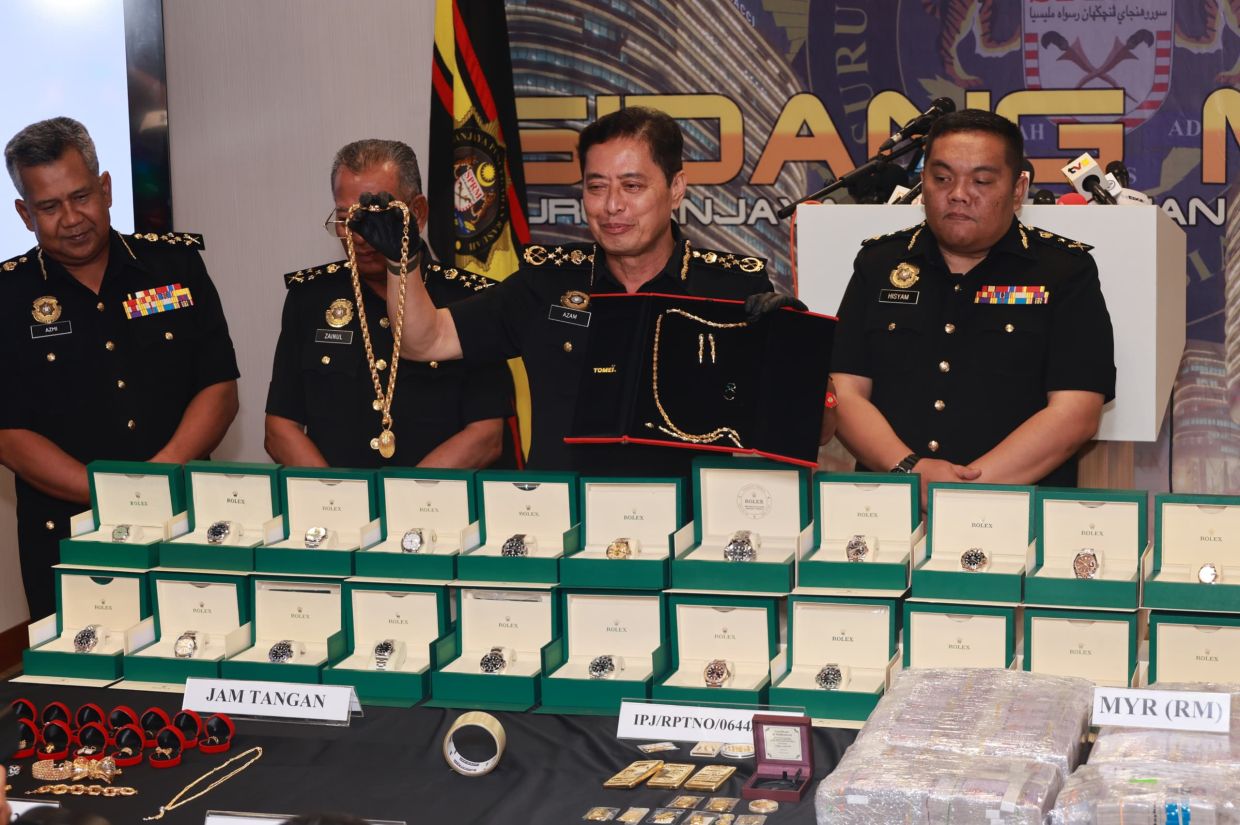 Malaysian Anti-Corruption Commission (MACC) chief commissioner Tan Sri Azam Baki said several items were seized, including cash, luxury watches, jewellery, gold and a luxury vehicle.