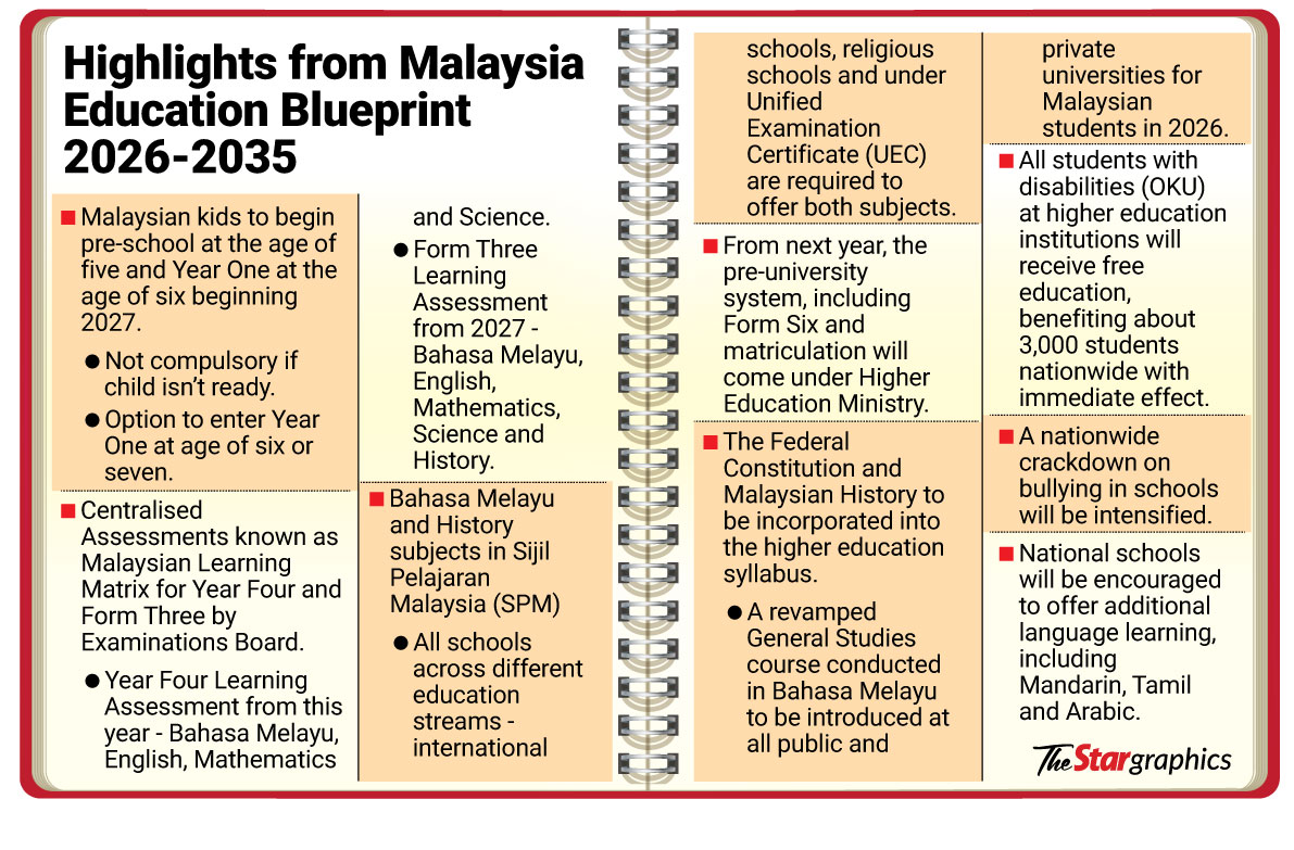 KUALA LUMPUR: Schools across all education systems will be required to provide Sijil Pelajaran Malaysia (SPM) Bahasa Melayu and History subjects under the new education plan.