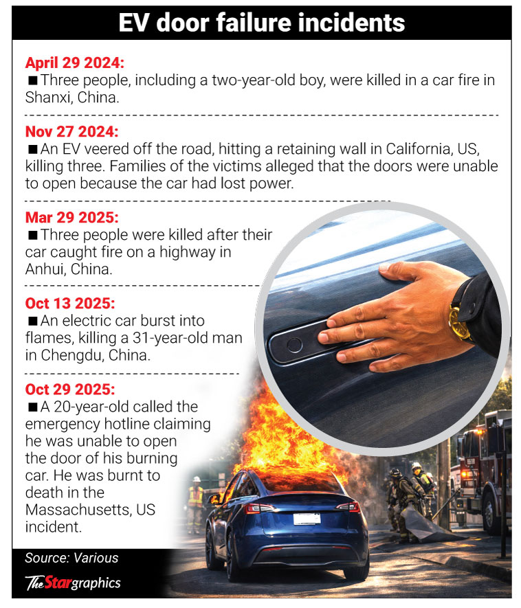 PETALING JAYA: As China moves to phase out “hidden” or retractable car door handles by 2027 over safety concerns, Malaysian transport experts are urging authorities to tighten inspections on new vehicles sold locally, warning that the sleek designs could pose deadly risks during emergencies.