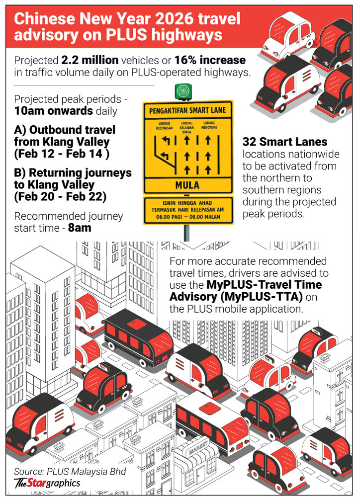 In KEDAH, some 300,000 vehicles are expected to enter the Kota Setar district during the Chinese New Year.