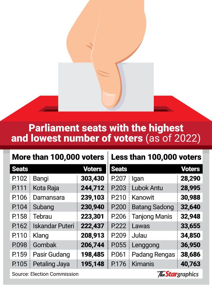 The Star’s analysis of the 222 parliamentary seats for the 2022 election data showed that 86 seats had over 100,000 voters.
