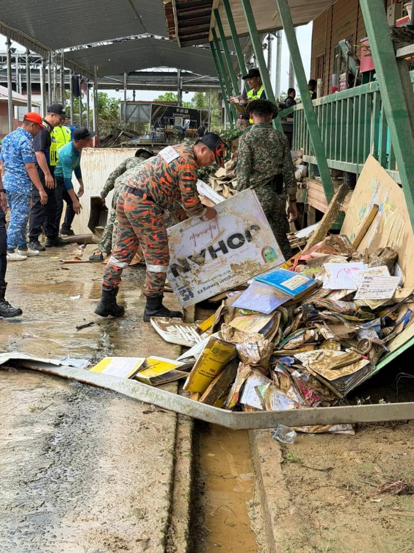 These include firemen, police, armed forces, civil defence officials, RELA, and other government agencies who arrived to not only bring in bottled water, food baskets and other essentials, but also to clean up.