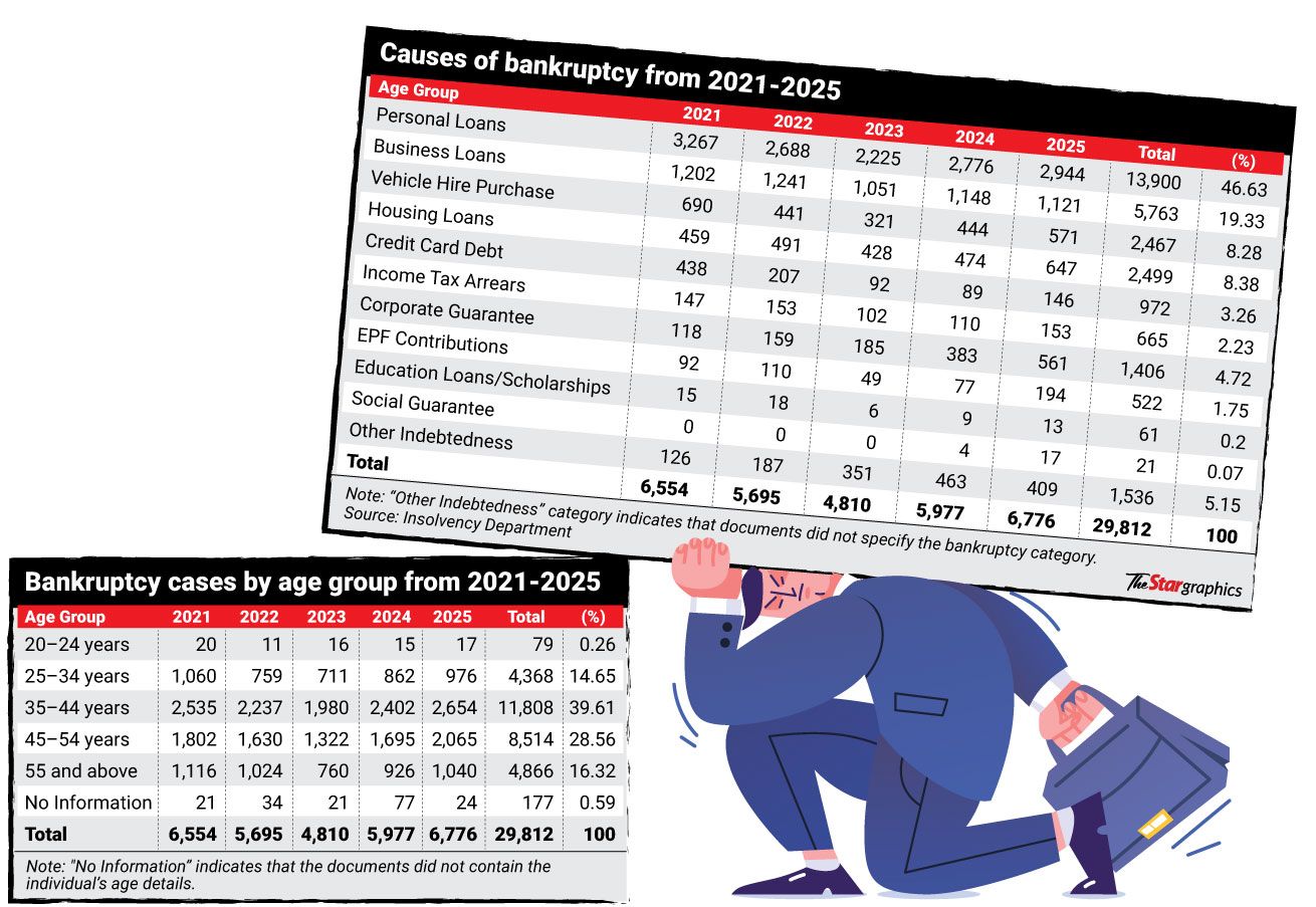 PETALING JAYA: Malaysians aged 35 to 44 form the largest share of bankruptcy cases, accounting for 39.61% of all instances recorded between 2021 and December 2025.