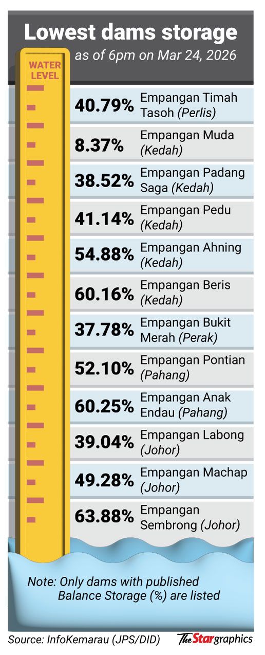 The Empangan Muda in Kedah is the worst hit in the country, with its storage down to just 8.37%.