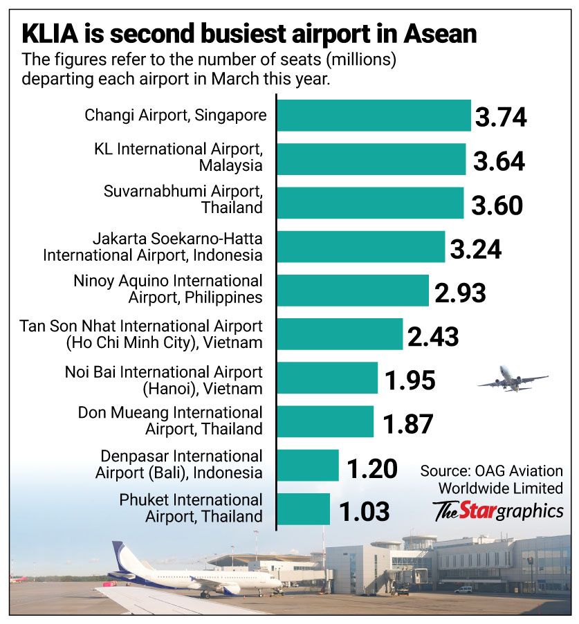 As of this month, KLIA also retained its spot as the second busiest airport in South-East Asia, after Singapore’s Changi Airport.