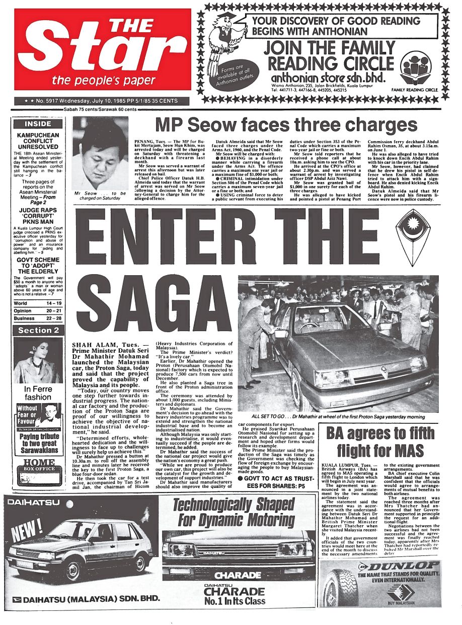 Few front pages in the archives of The Star, which celebrates its 55th anniversary this year, stand out quite like the edition that heralded this bold new era for Malaysia: the launch of the country’s first national car.