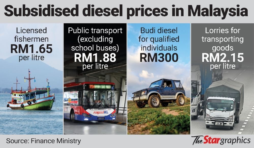 Subsidised diesel is sold at RM2.15 per litre while the diesel at the pumps are sold at floated prices – currently at RM6.72 (up from RM6.02 previously).