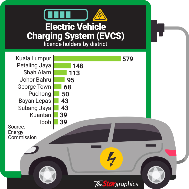 The commission’s data shows that Kuala Lumpur leads with the highest number of EVCS licence holders at 579.