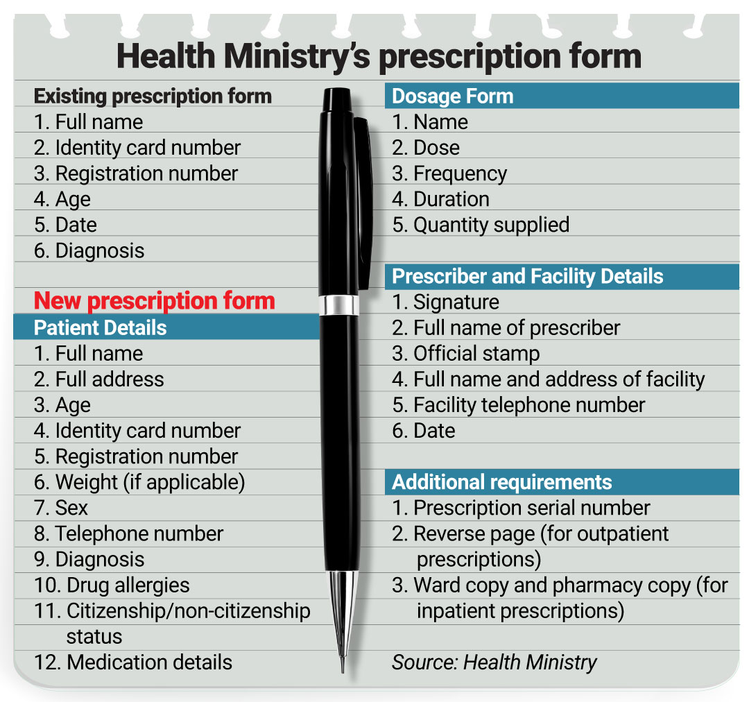 In a recent circular sighted by The Star, the ministry said it had reviewed the existing prescription format and found it fell short of requirements under the relevant laws and regulations.