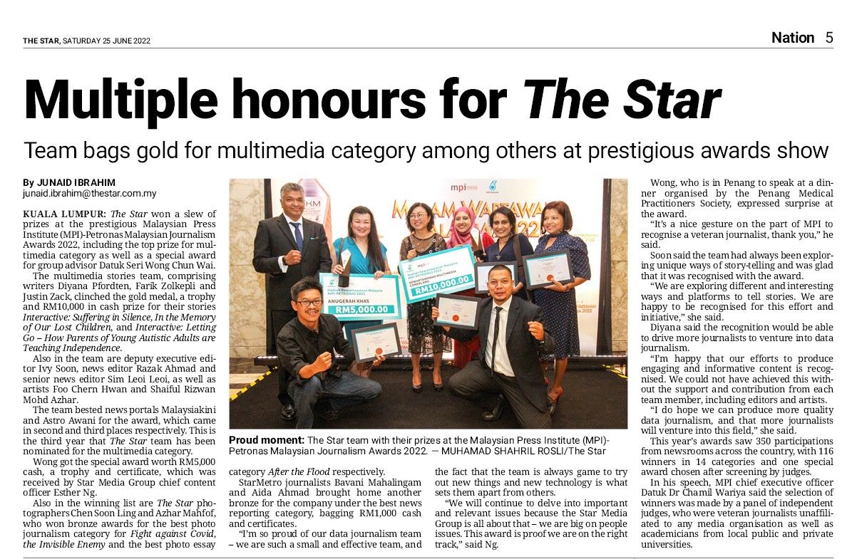 Most of the award-winning stories were the result of collaboration between the data team and journalists from other sections in The Star.