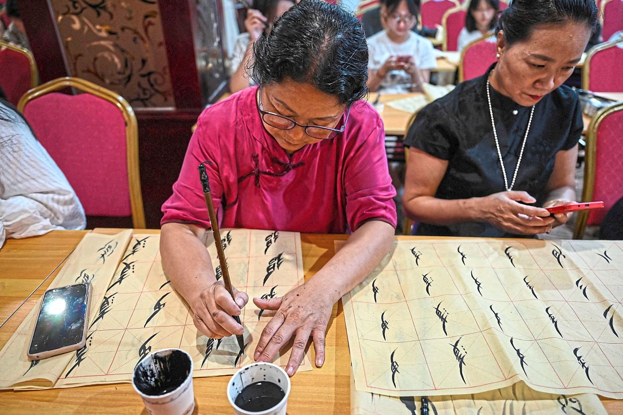 At a studio in central Hunan province, a teacher grips an ink brush, gently writing characters of a secret script created by women centuries ago and now being embraced by a new generation.
