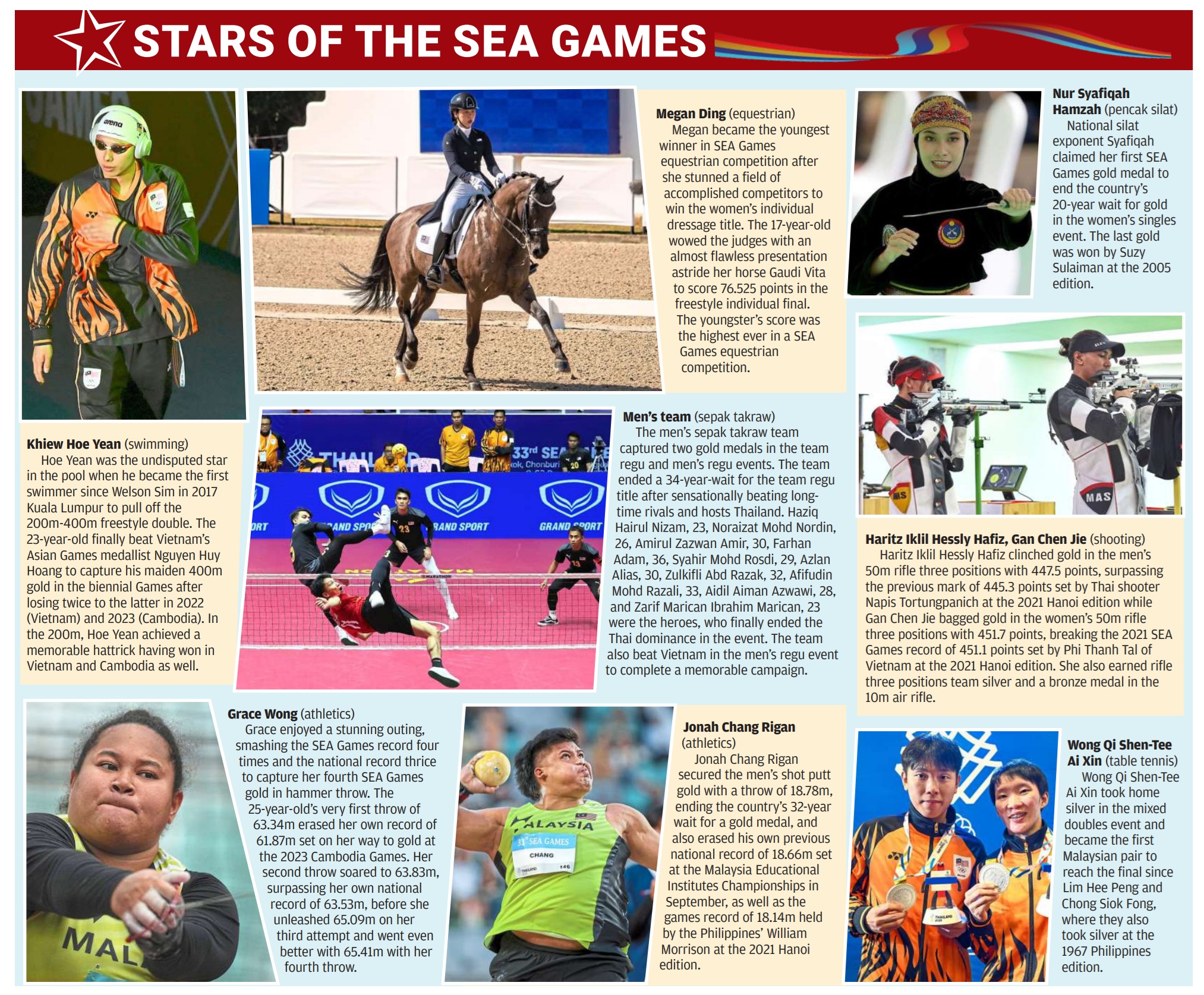 CLICK TO ENLARGE Already a subscriber? Log inThe Star Christmas Special Promo: Save 35% OFF Yearly. T&C applies.Cancel anytime. Ad-free. Unlimited access with perks.Monthly PlanRM 13.90/monthSubscribeBest ValueAnnual PlanRM 12.33/monthRM 8.02/monthSubscribeBilled as RM 96.20 for the 1st year, RM 148 thereafter. Follow us on our official WhatsApp channel for breaking news alerts and key updates! Tags / Keywords: SEA Games Report a mistake What is the issue about? Spelling and grammatical error Factually incorrect Story is irrelevant This field is mandatory. Please provide details of the report. Email (optional) Please enter valid email. Report issue Report issue Cancel Invalid captcha response. Please re-try again. Thank you for your report! Related News Nation 2h ago King, Queen applaud SEA Games heroes Nation 17h ago King, Queen congratulate Malaysian SEA Games contingent Badminton 1d ago Kenny says SEA Games miss no cause for alarm