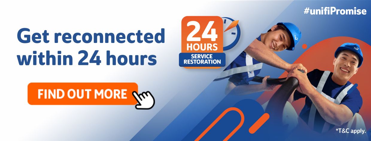 They will also know the technician's scheduled arrival for restoration work. Service should be restored within 24 hours, or a RM50 bill rebate will be issued for the customer’s bill and redeemed via the MyunifiApp.