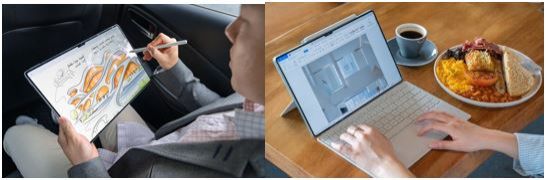 > Laptop form: Users can use the tablet on a desk without needing to look down at the screen, maintaining a healthy neck and shoulder poisture even during extended work sessions.