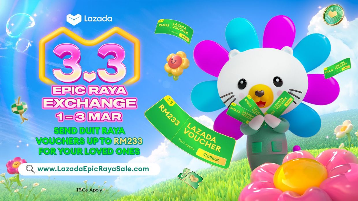 Through the Epic Raya Exchange, shoppers can surprise their loved ones with surprise Lazada 3.3 vouchers worth up to RM233 (while daily stocks last).