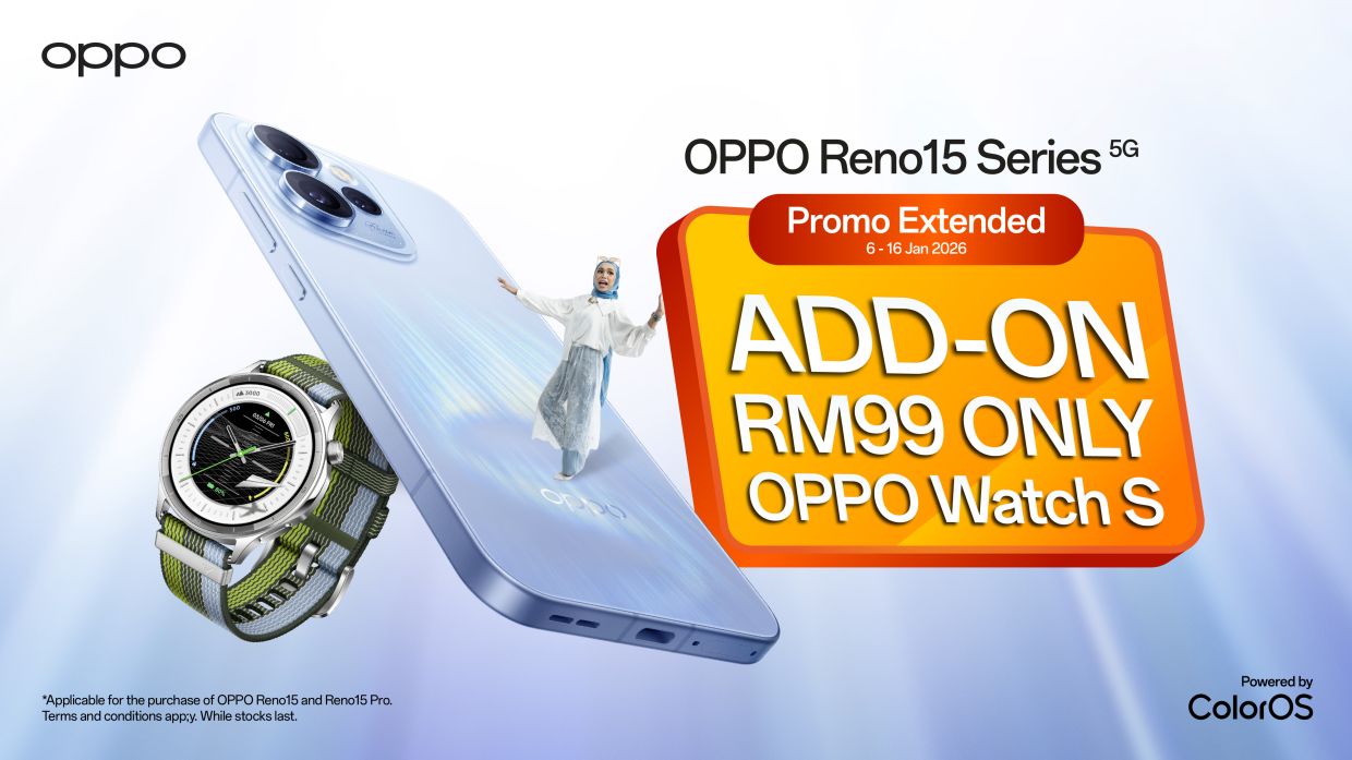 To celebrate the arrival of this new series, OPPO is offering an incredible deal. With every purchase of an OPPO Reno15 Pro or Reno15, customers are entitled to grab the latest OPPO Watch S (worth RM799) for only RM99.