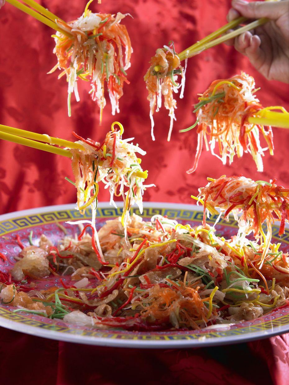 1. Pull, toss and prosper: Pulled Chicken Yee Sang