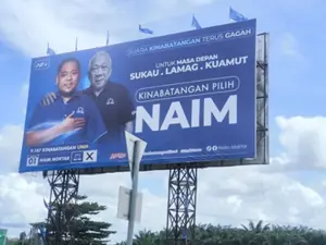 KINABATANGAN: Along several roads and near roundabouts in Kinabatangan, large campaign billboards bearing the face of Barisan Nasional's candidate, Mohd Naim Kurniawan Moktar, have begun appearing, but it is not just his image that draws attention.