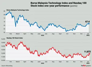 PETALING JAYA: Technology stocks, which heavily underperformed last year, may be emerging on investors’ radar globally and locally, on bets of less aggressive interest-rate hikes from the US Federal Reserve (Fed).PETALING JAYA: Technology stocks, which heavily underperformed last year, may be emerging on investors’ radar globally and locally, on bets of less aggressive interest-rate hikes from the US Federal Reserve (Fed).