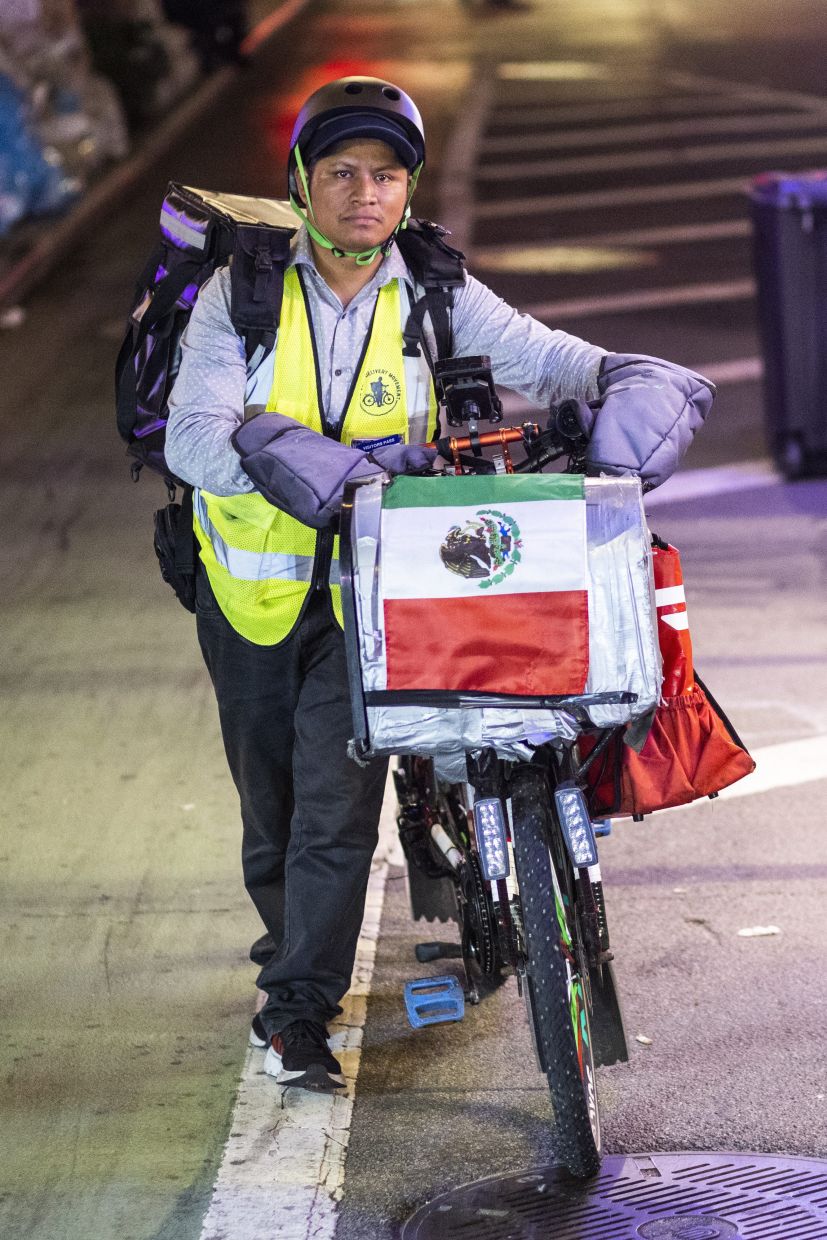 Juan Solano, who migrated from the Mexican state of Guerrero in 2017, founded El Diario de los Delivery Boys en la Gran Manzana, a group of delivery workers who help retrieve stolen ebikes, often with the help of monitoring devices. Launched during the pandemic, the group has more than 50,000 followers on Facebook and a WhatsApp channel to alert delivery workers of robberies in real time.