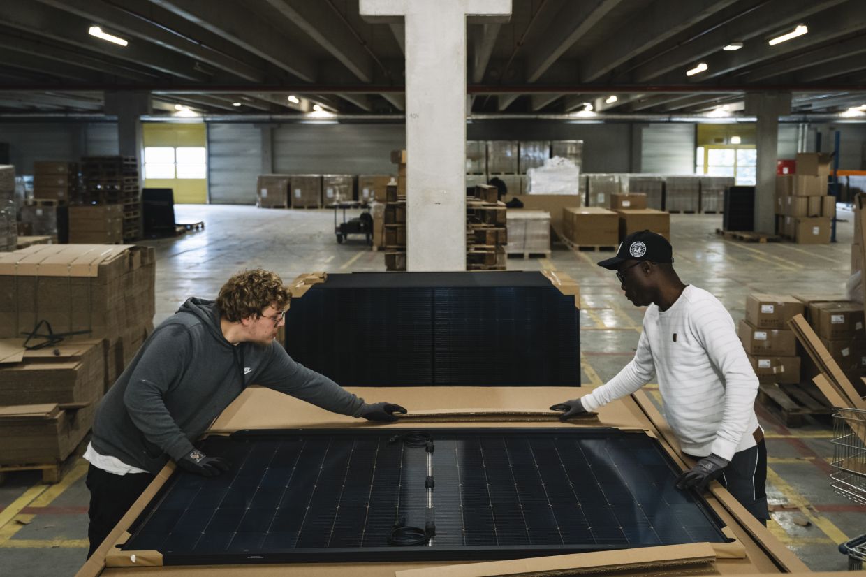 Workers in Solago, a company that sells rooftop solar panels and plug-in versions, in Hilden, Germany, on July 10, 2024. Solago, which opened in a small storefront in a suburb of Düsseldorf, has since grown to a fill a warehouse roughly the size of a Manhattan square block. — The New York Times